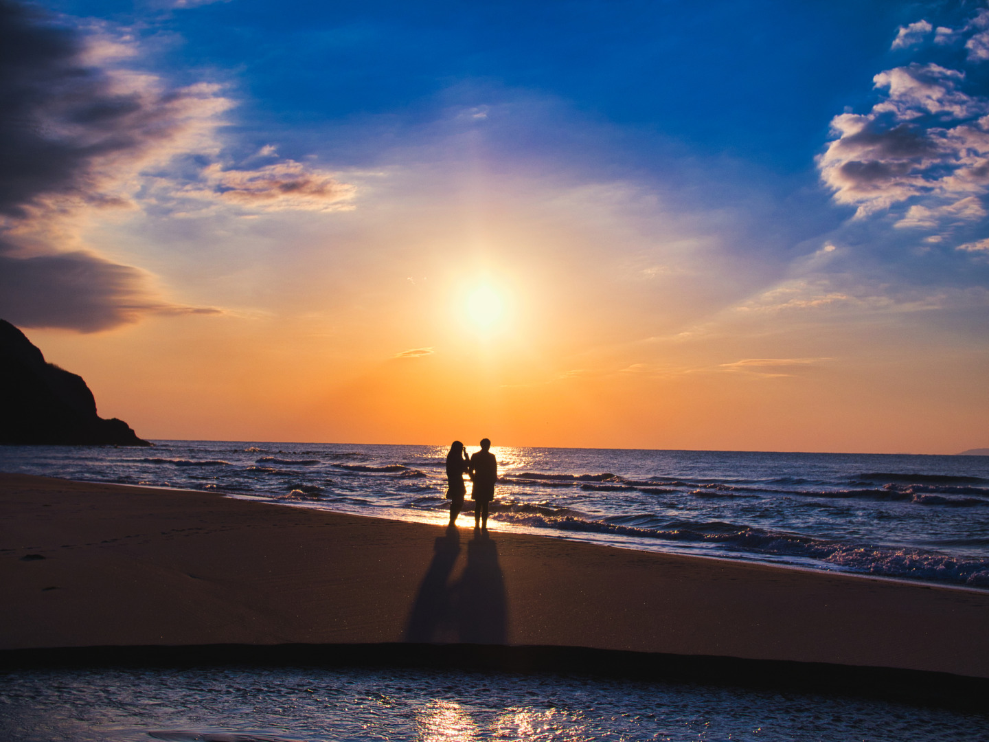 夏には海水浴客で賑わう角田浜は、水平線に沈む美しい夕日が望めるビューポイント。特に日没前後のマジックアワーは、空と海が紫やピンクに染まり、息をのむほどの美しさです。
