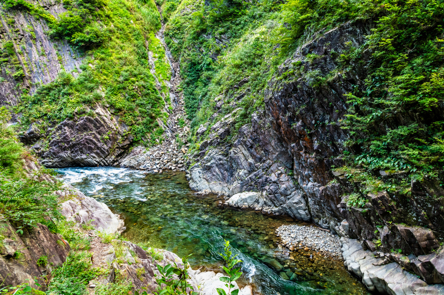 黒部峡谷・大杉谷とともに日本三大峡谷の一つに数えられる「清津峡」。荒々しい柱状節理の岩肌と清津川の大自然が織りなす絶景を堪能できます。