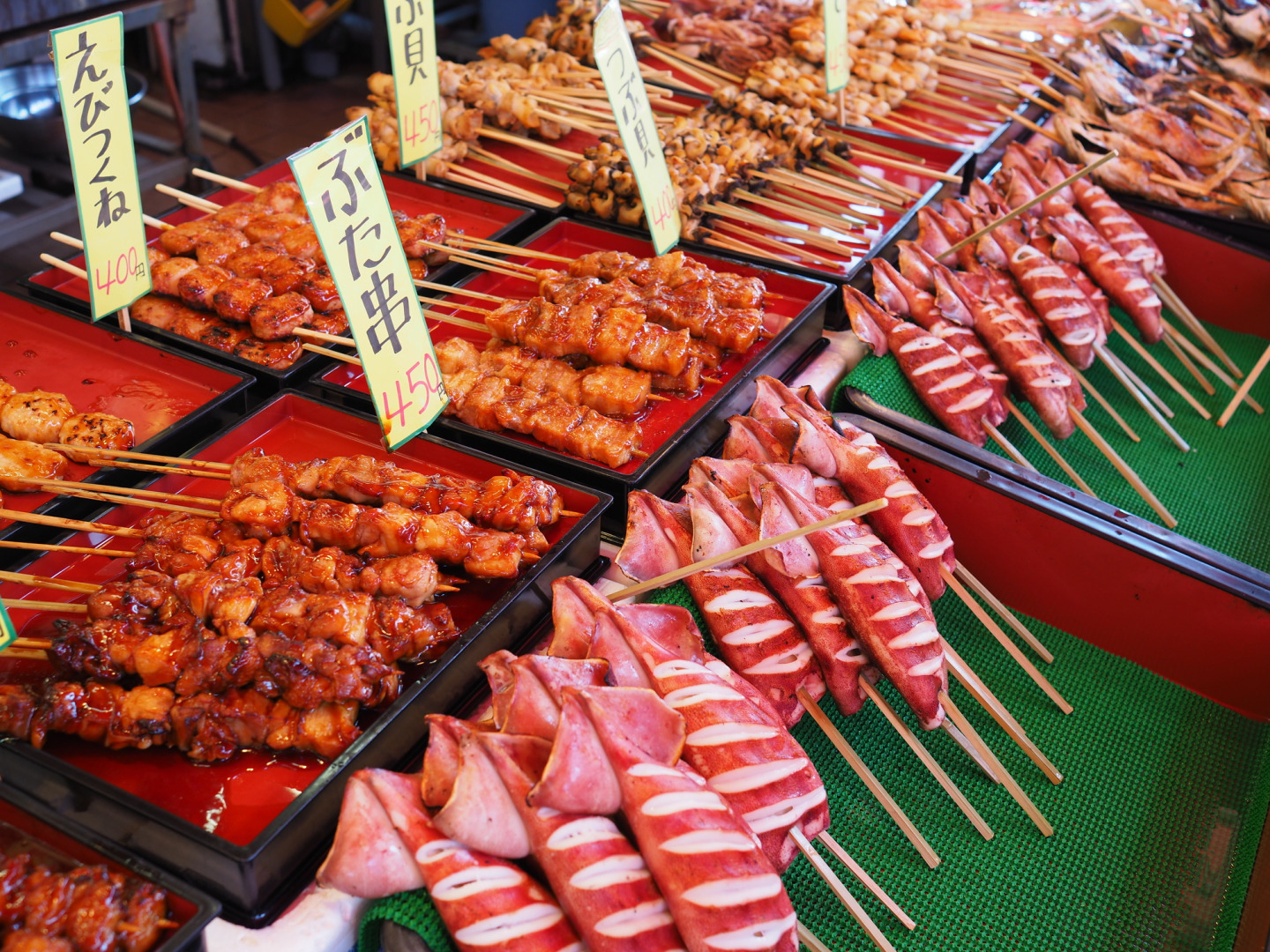 日本海に面した国道402号線沿いに鮮魚店や土産物店が軒を連ねる、通称「魚のアメ横」。地魚をはじめ全国の新鮮な海産物がずらりと並び、お手頃価格で手に入ります。定番のカニ、イカやホタテ、旬の魚を串に差して香ばしく焼いた「浜焼き」はこの通りの名物。潮風を感じながら新鮮な海の幸をその場で味わう、贅沢な時間を過ごせます。活気ある雰囲気の中、食べ歩きや買い物を楽しんで!