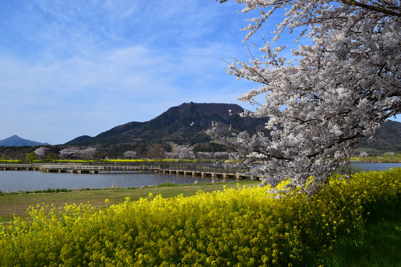 海沿いを移動して西蒲区へ。海岸沿いを走れば車窓からは時折海が見え新潟らしい景色を楽しめます。角田山の麓にある「上堰潟公園」は景色が人気のスポット。種類豊富な遊具で遊んだり、野鳥が生息する潟を眺めながら散歩をしたり、自然を感じながらゆっくりと過ごすことができます。 春は桜、夏はひまわり、秋はコスモスが咲き四季によって景色が変化。秋になると、稲刈りの際に出る稲わらを使用するわらアートが展示され、迫力ある作品を鑑賞できます。