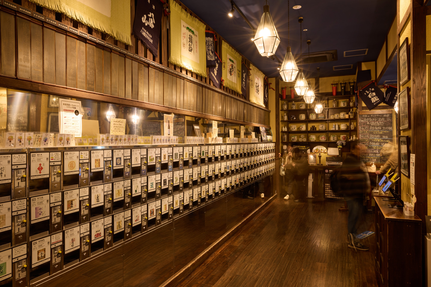 利き酒コーナー「唎酒番所」では、県内全酒蔵の代表銘柄100種以上の日本酒が試飲できます。ずらりと並ぶ唎酒マシンの中から飲みたい銘柄を選び、お猪口をセット。コインを入れてボタンを押すと日本酒が注がれます。気に入ったお酒があれば、購入して帰りましょう!