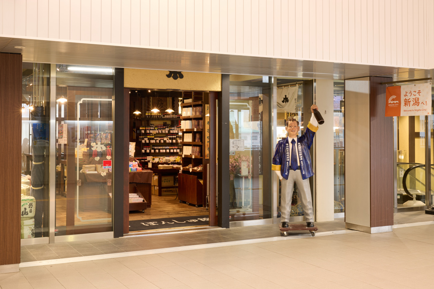 最後は新潟駅構内にある「ぽんしゅ館」へ。県内にある酒蔵の日本酒やワインのほか、地酒を使ったお菓子、調味料などお土産にぴったりな商品が揃っています。