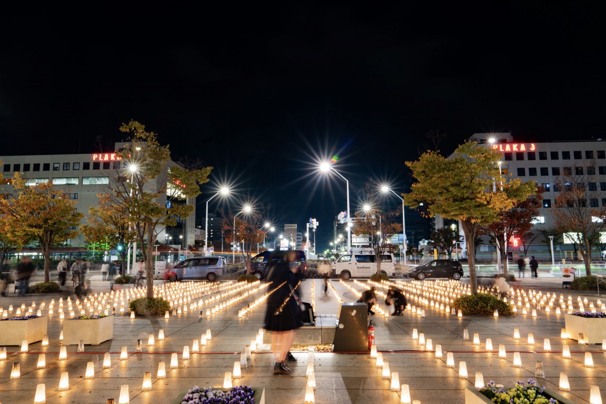 新潟駅南口中央広場で障がい者に使っていただいた約2,000個のキャンドルが点灯され、アコースティックライブのほか、フードやドリンクが販売されます。