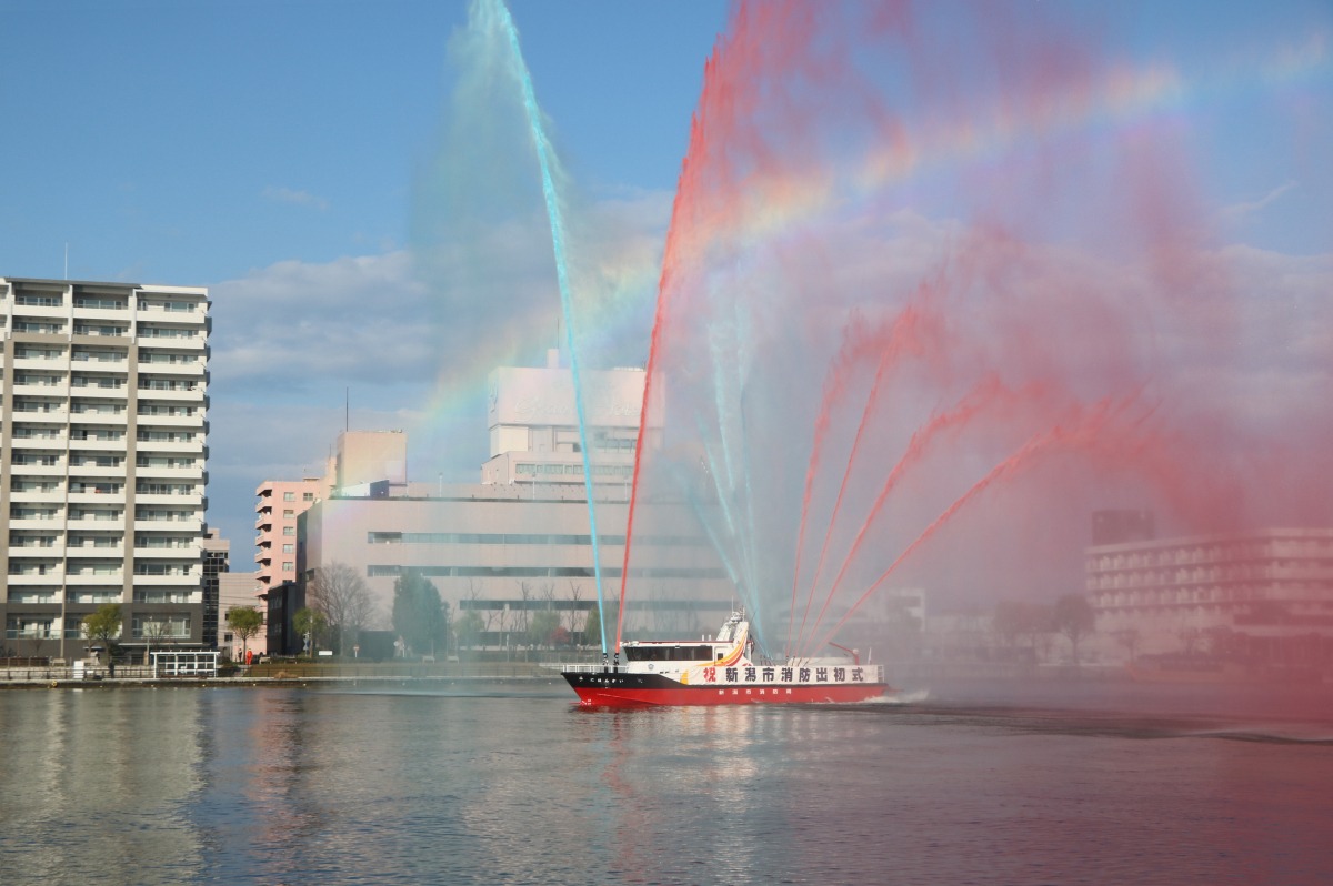 内容:消防車や消防艇が、信濃川両岸から一斉に放水を行います