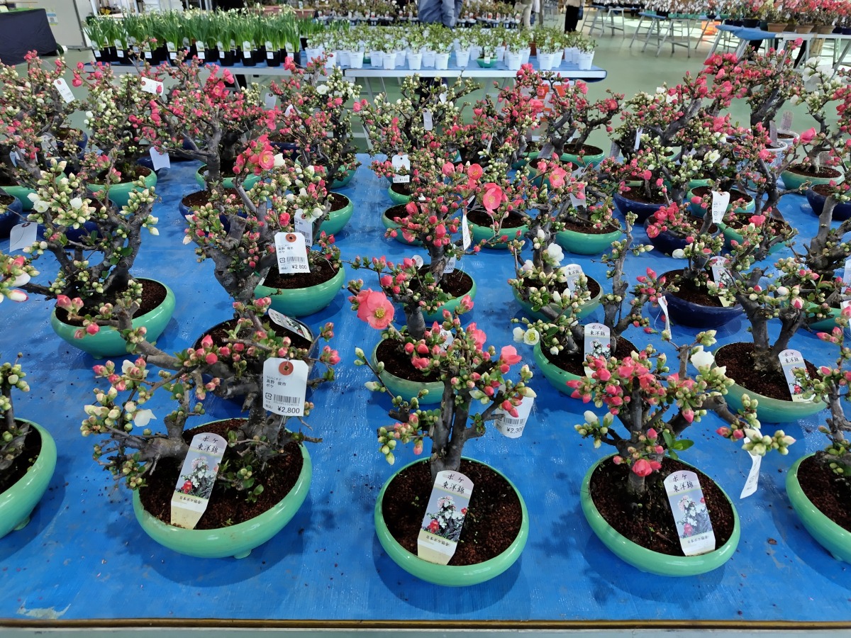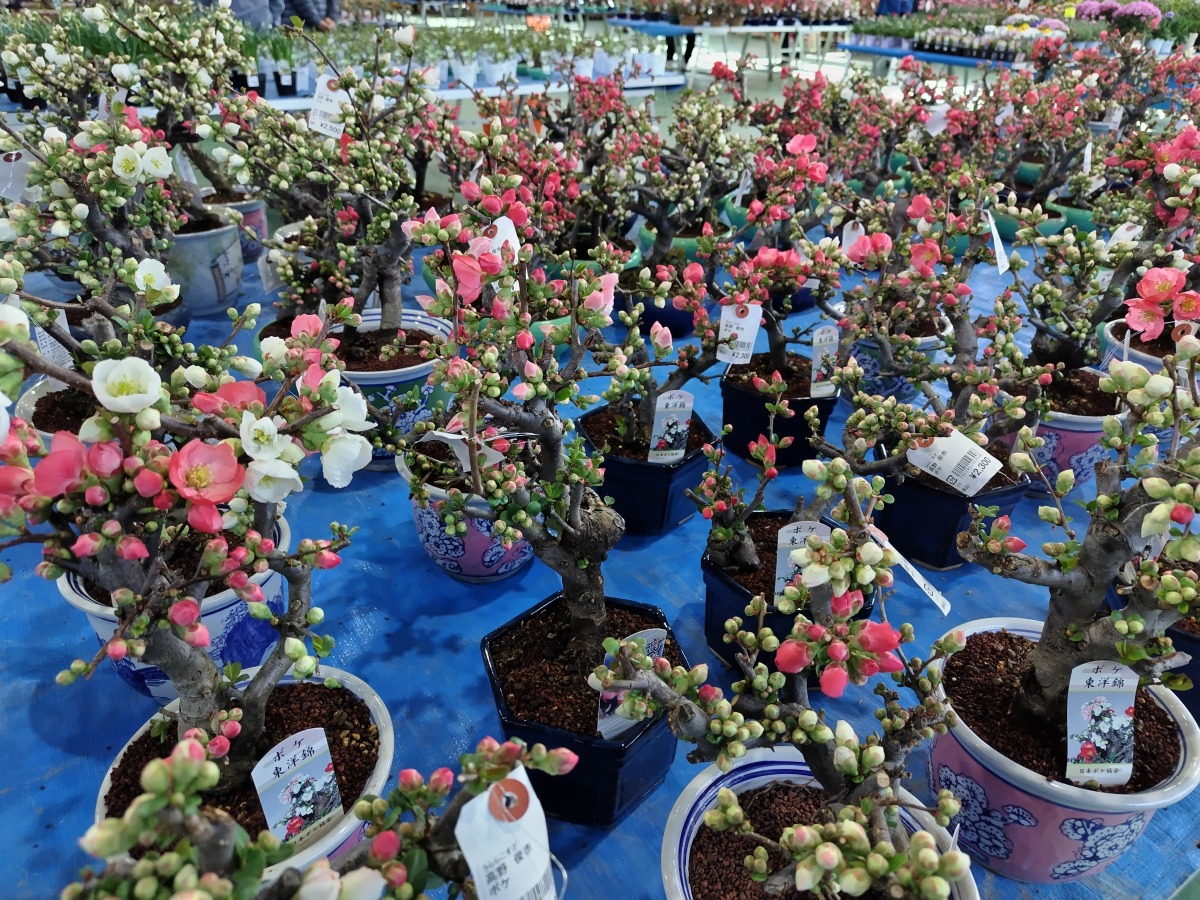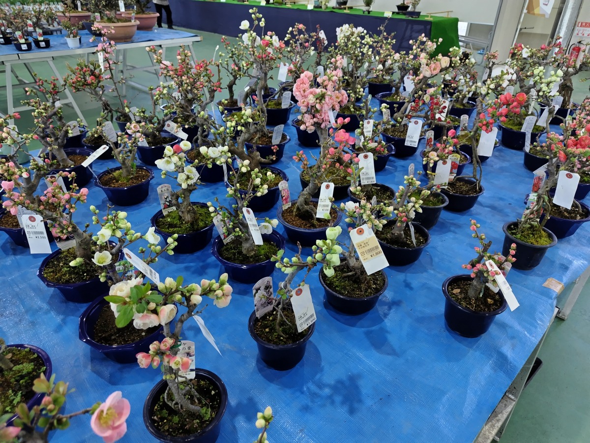 ボケの鉢花の即売会や、育て方等の講演も実施され、全国から多くの愛好者が訪れます。