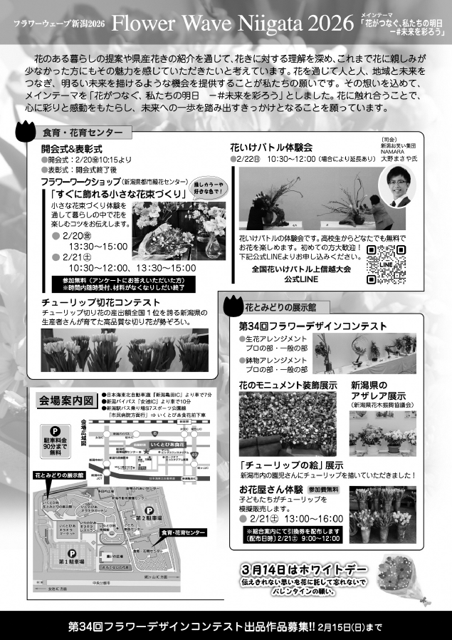 | お問い合わせ | 新潟県花き振興協議会 事務局 TEL:025-257-6900 |