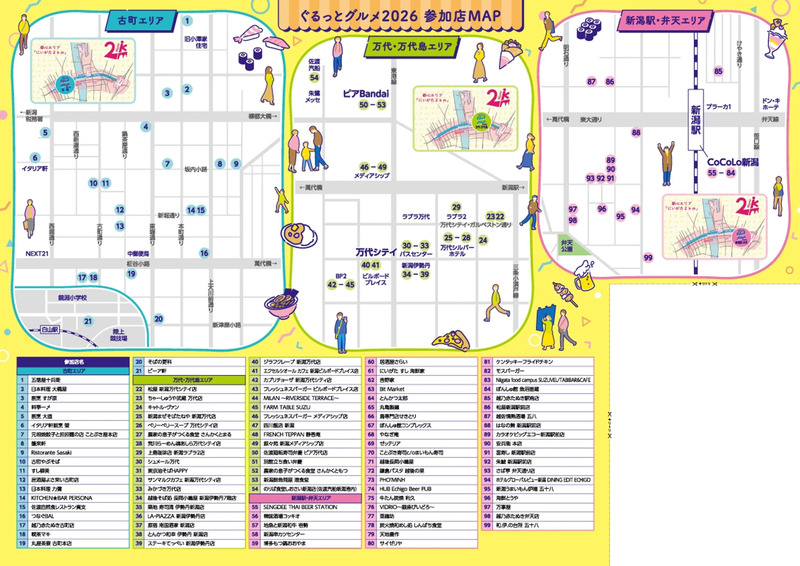 | 参加店舗 | 古町エリア、万代・万代島エリア、新潟駅・弁天エリアの全99店舗 |