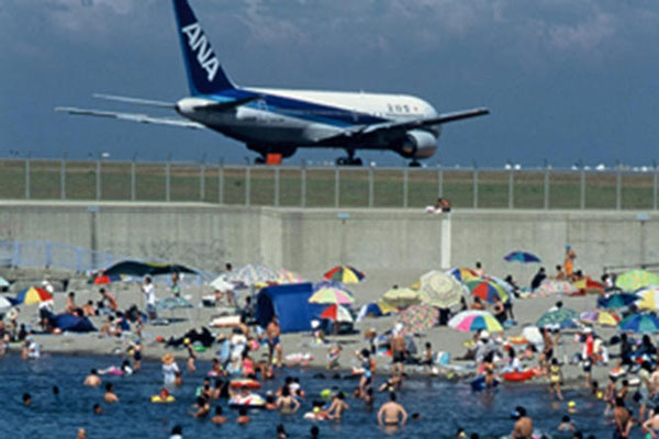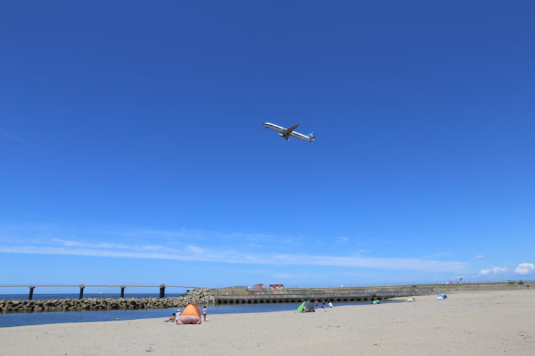 全域波消しブロックで囲まれていて穏やかな波のもと家族で楽しめる海水浴場です。新潟西港と新潟空港の間にある海水浴場で、発着する飛行機や佐渡汽船カーフェリーなどの大型船を眺めることもできます。