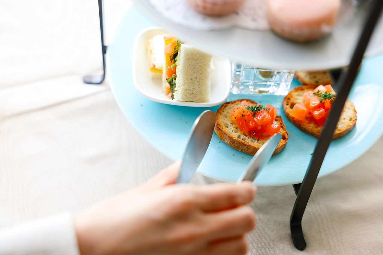 テーブルを彩る料理は、味はもちろん見た目も格別。自家製スイーツ、スコーン、ブルスケッタなど、どれから食べるか迷ってしまう内容です。料理は10種類以上。ホテル専属のシェフやパティシエが手がけています。