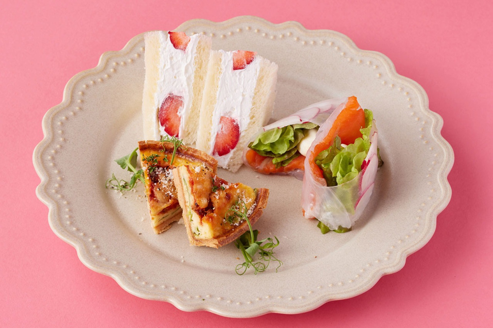 セイボリーには、ミートソース発祥の地「イタリア軒」の歴史を感じさせる、伝統のボロニア風ミートソースを使ったキッシュや地元の食材をふんだんに使った「スモークサーモンと越後姫ドレッシングの生春巻き」など、こだわりの味を楽しめます。