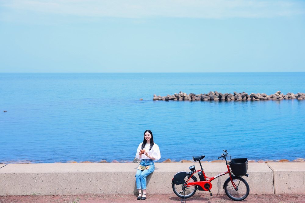 田中さんは人気店で朝ごはんを調達してから、新潟駅から自転車で約30分ほどの海岸へ向かうスタイルがお気に入り。