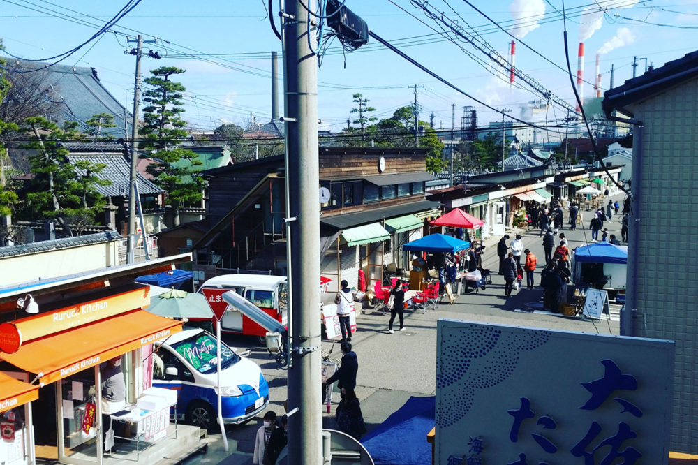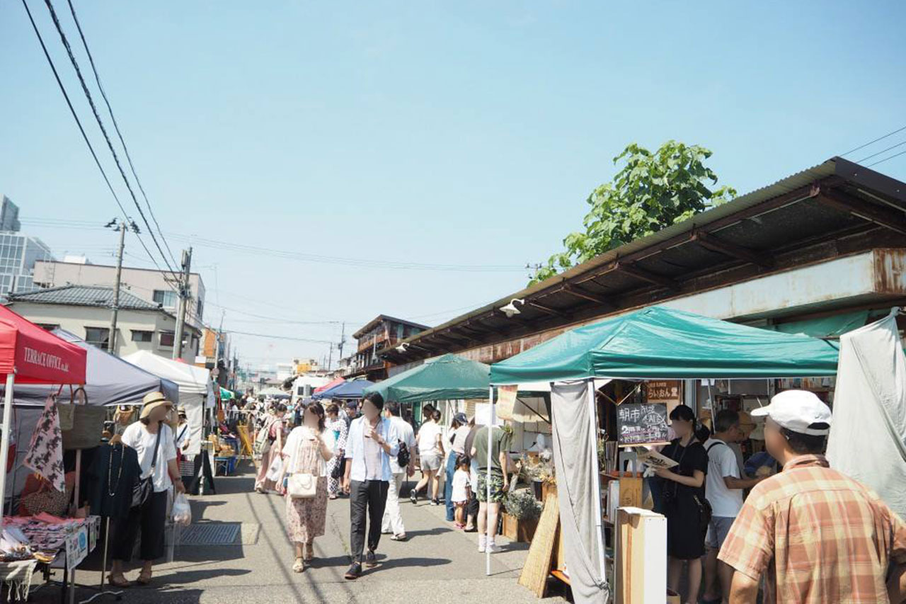 レトロな街並みが印象的な「沼垂テラス商店街」では、毎月第1日曜日に朝市が開催されます。朝市は8時からスタート。雑貨屋、アクセサリー屋など商店街のお店だけでなく、キッチンカーやハンドメイドショップなど県内の人気のお店が出展するので、グルメを楽しんだりお土産探しにも最適です。