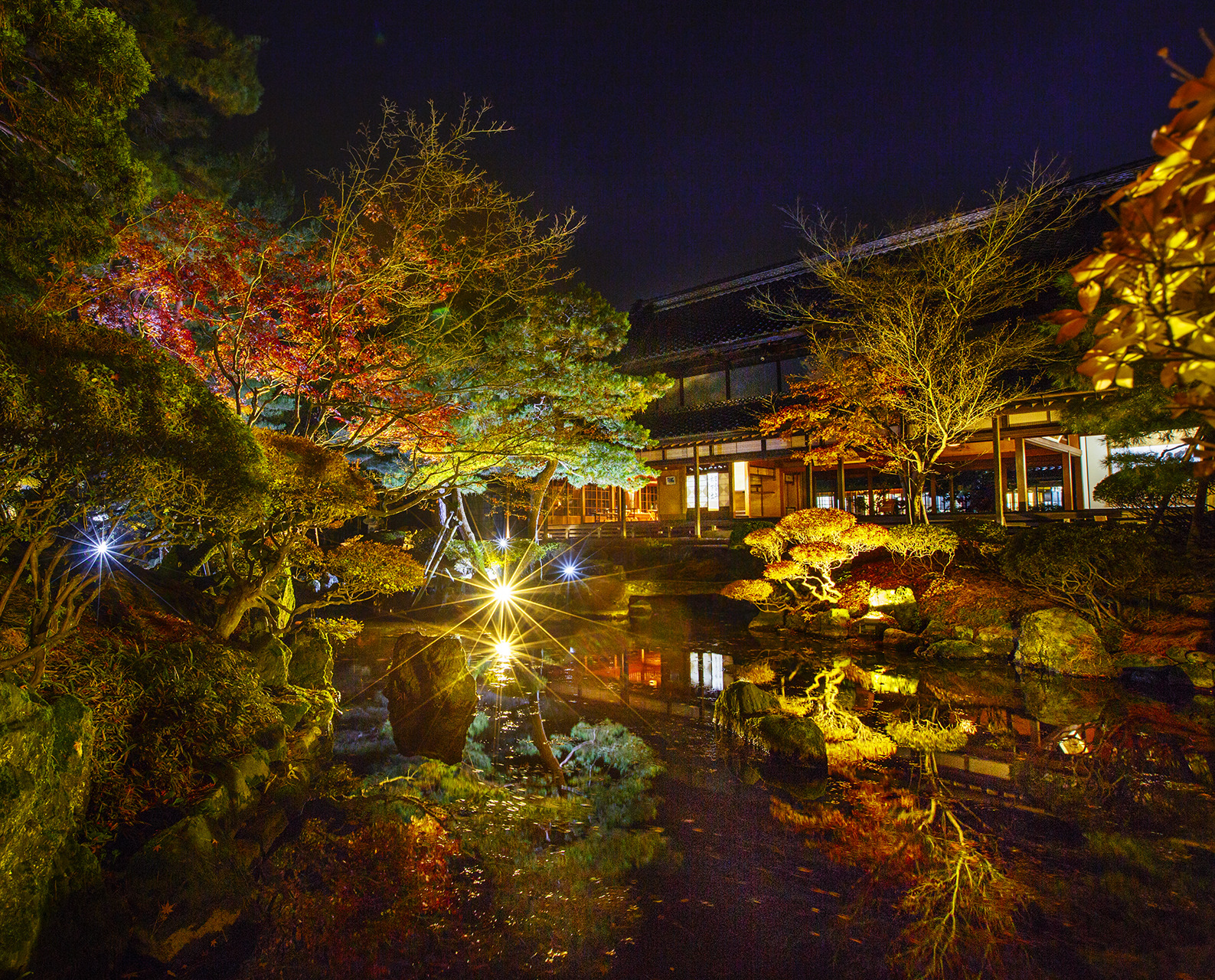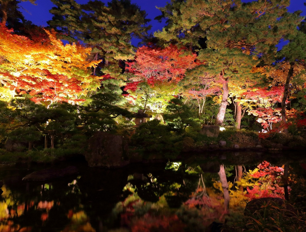 江戸中期、農より身を興し、越後随一の大地主となった伊藤家。その伊藤家八代にわたる暮らしを今に伝える豪農の館・北方文化博物館。11月の庭園は、錦の山を移したかのような紅葉に彩られ、100畳敷の大広間から眺める回遊式庭園の彩りは必見です。紅葉が見頃を迎える11月中旬には、開館時間を延長し、庭園をライトアップします。昼間とは一味違う趣きある邸宅の雰囲気をお楽しみいただけます。