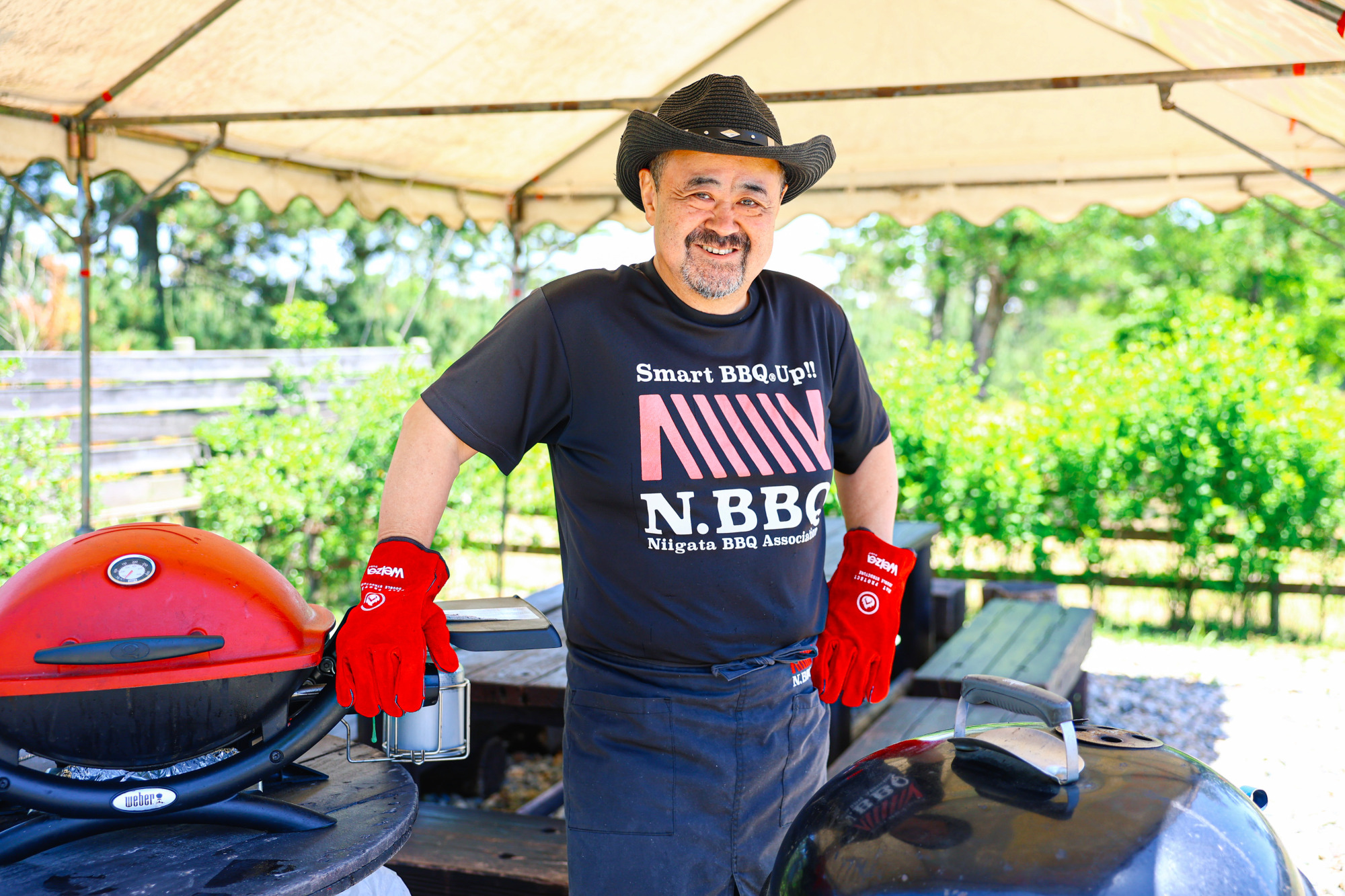 手ぶらでBBQはインストラクターが指導してくれるのが特徴。この日は新潟のメディアによく登場するBBQのプロで新潟バーベキュー協会会長のパンチョ須田さんが本物のBBQを教えてくれることに。美味しい焼き方を伝授してもらいます。