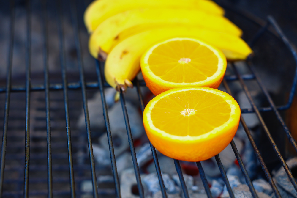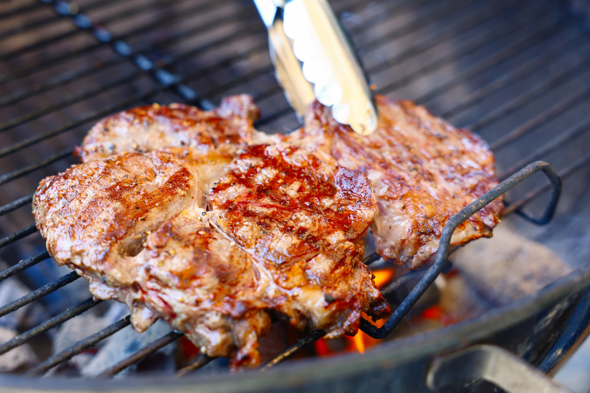 野菜はまるごと焼くことで水々しく。果物は焼くことで甘みが凝縮され、表面が膨らんだら食べごろです。須田さんはアメリカWEBER社製のガス式とチャコール式グリルを使い分け、本格的なBBQを披露してくれます。ステーキは、オリーブオイルとハーブや塩でマリネしてから熱したコンロへ。表面をしっかり焼いた後、桜のチップで香り付け。肉汁が上がってきたら火が通った合図です。
