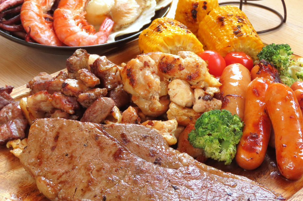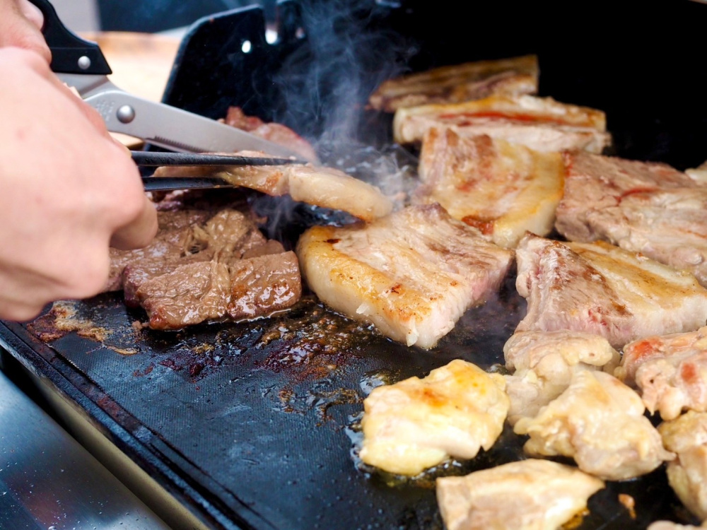 食材を購入しない場合はコースを注文。ピアBandai15周年記念特別コース等のほか、ピーカンBBQの姉妹店「ベジテジや Soi新潟万代店」が手掛ける本格的なサムギョプサルも楽しめます。調理にはアメリカ製の高級グリルを使用。簡単に火力調整ができるので初心者でも調理することができます。準備や片付けをしなくてもいいのは魅力の一つ。