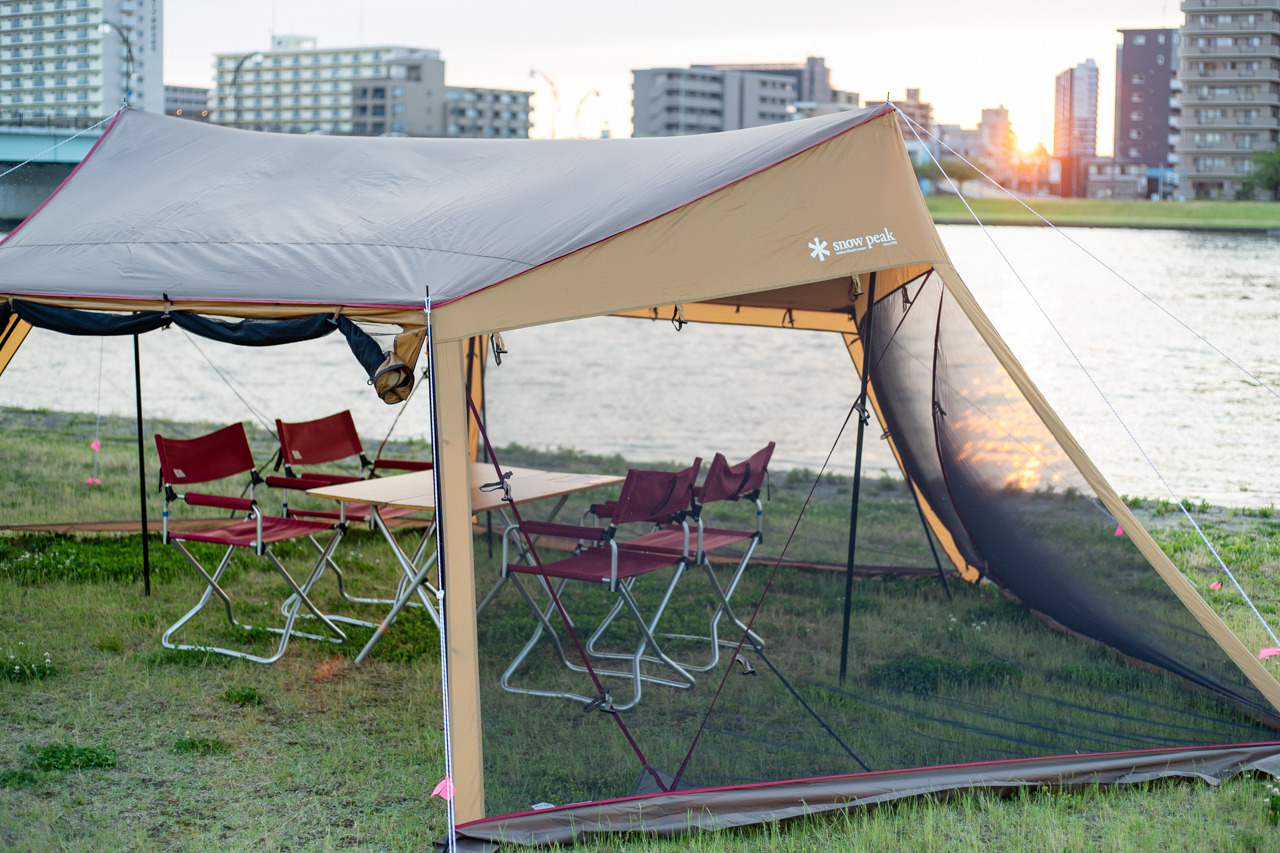 都市と自然が調和する新潟市ならではの景観が楽しめるやすらぎ堤に期間限定で登場するのが、アウトドア用品ブランドSnow Peakが運営する「ミズベリング 水辺アウトドアラウンジ」。賑やかな街中にありながら、静かでゆったりとした時間が流れる特別な空間が人気で、新潟市の夏の風物詩になっています。