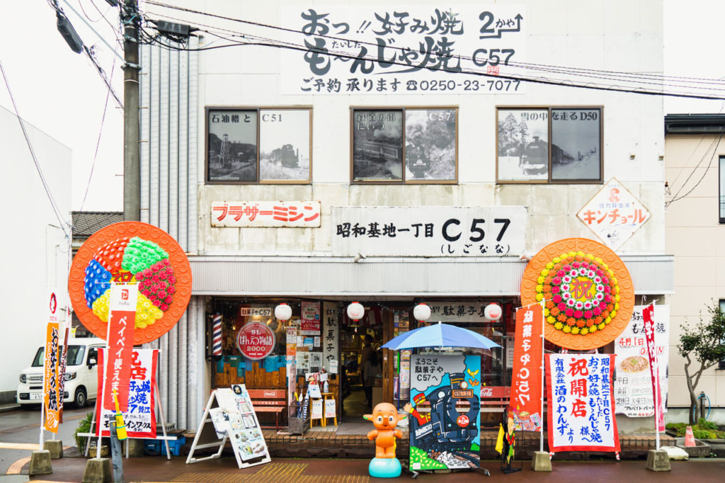 今回にいがた観光親善大使の鈴木さんと訪れたのは、新津駅から徒歩約3分の場所にある「駄菓子や昭和基地一丁目C57(しごなな)」。2010年のオープンから昭和レトロな雰囲気を楽しめると話題の駄菓子屋です。その人気は、週末になるとお店の外まで行列ができるほど。
