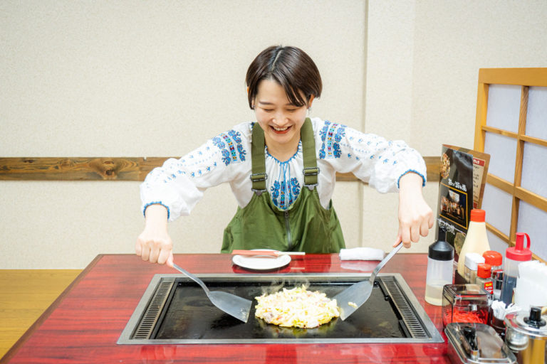 自分で焼くのもお好み焼きの醍醐味。綺麗に焼きたい人は型を使いましょう。