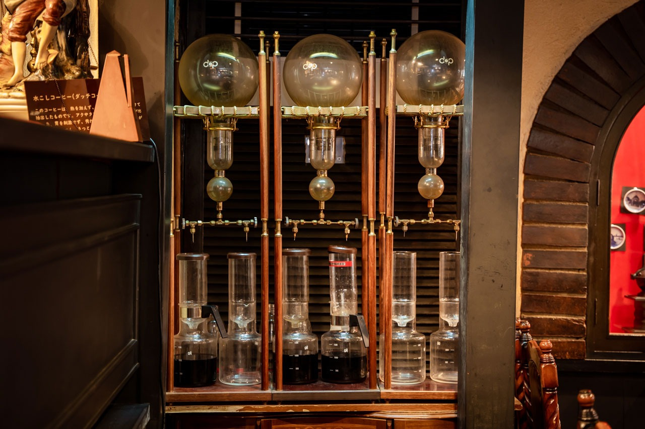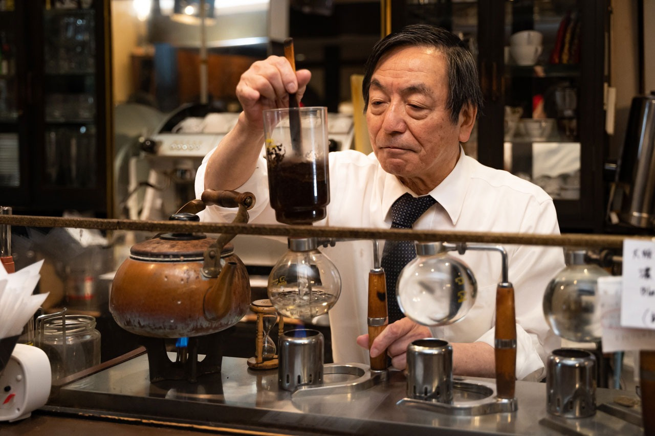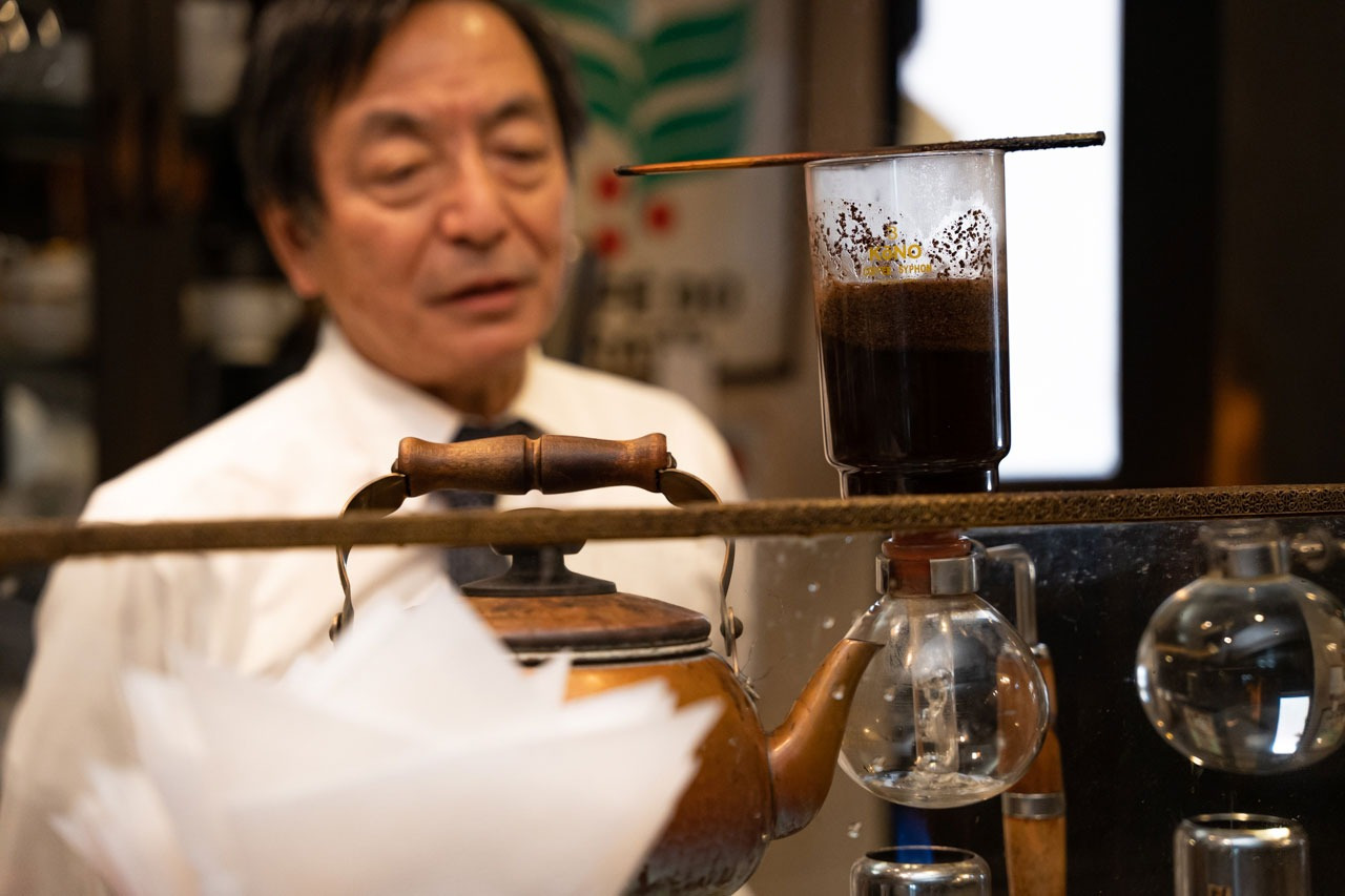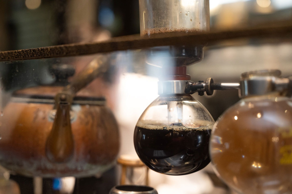 焼き上げた豆は、注文が入ってから一杯づつサイフォンで淹れていきます。長年の経験で培った、華麗な手さばきに思わず見とれてしまうはず。