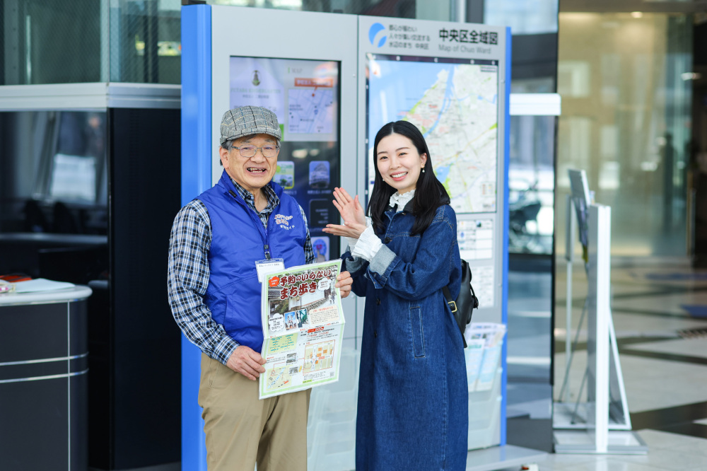この日、田中さんが体験するコースは、予約不要なので時間になったら集合場所のNEXT21の1階にいくだけ。500円で1人から参加できます。今回は歴史が好きな新潟シティガイド代表の倉地さんが案内してくれます。