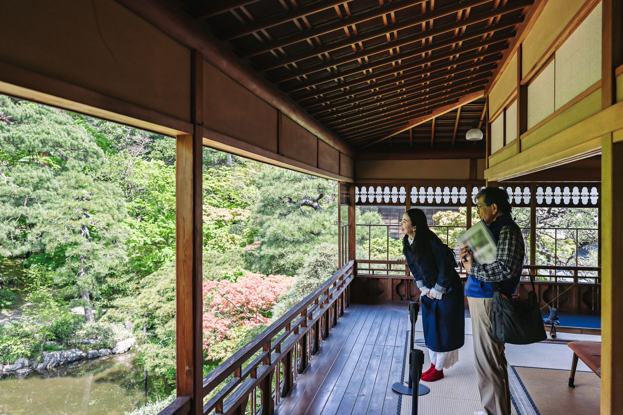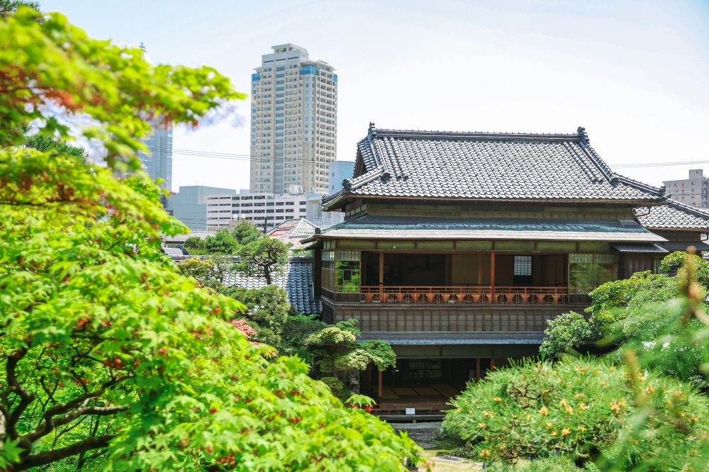 砂丘地形を利用した回遊式庭園は国の名勝に指定されています。1階からは額縁に入った絵画のような景色を、2階からは歴史を感じる建物の装飾と一緒に景色を眺められるなど場所によって異なる景色を眺められるのも魅力の一つ。夏は新緑、秋は紅葉を楽しめますよ。