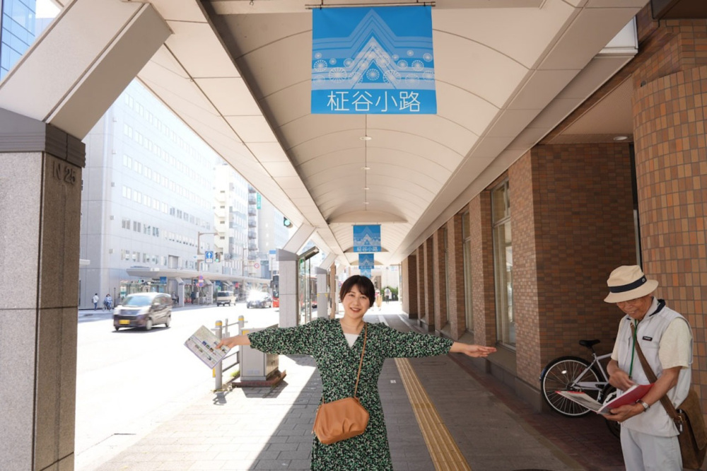 続いては、「柾谷小路(まさやこうじ)」へ。「にいがた2km」の軸になっている道でもあり、。オフィス街や商店街、ショップ、飲食店が並ぶ新潟市の中心を貫くメインストリートです。「名前のとおり、かつてはずっと幅の狭い小路だったんです」と渡辺さん。