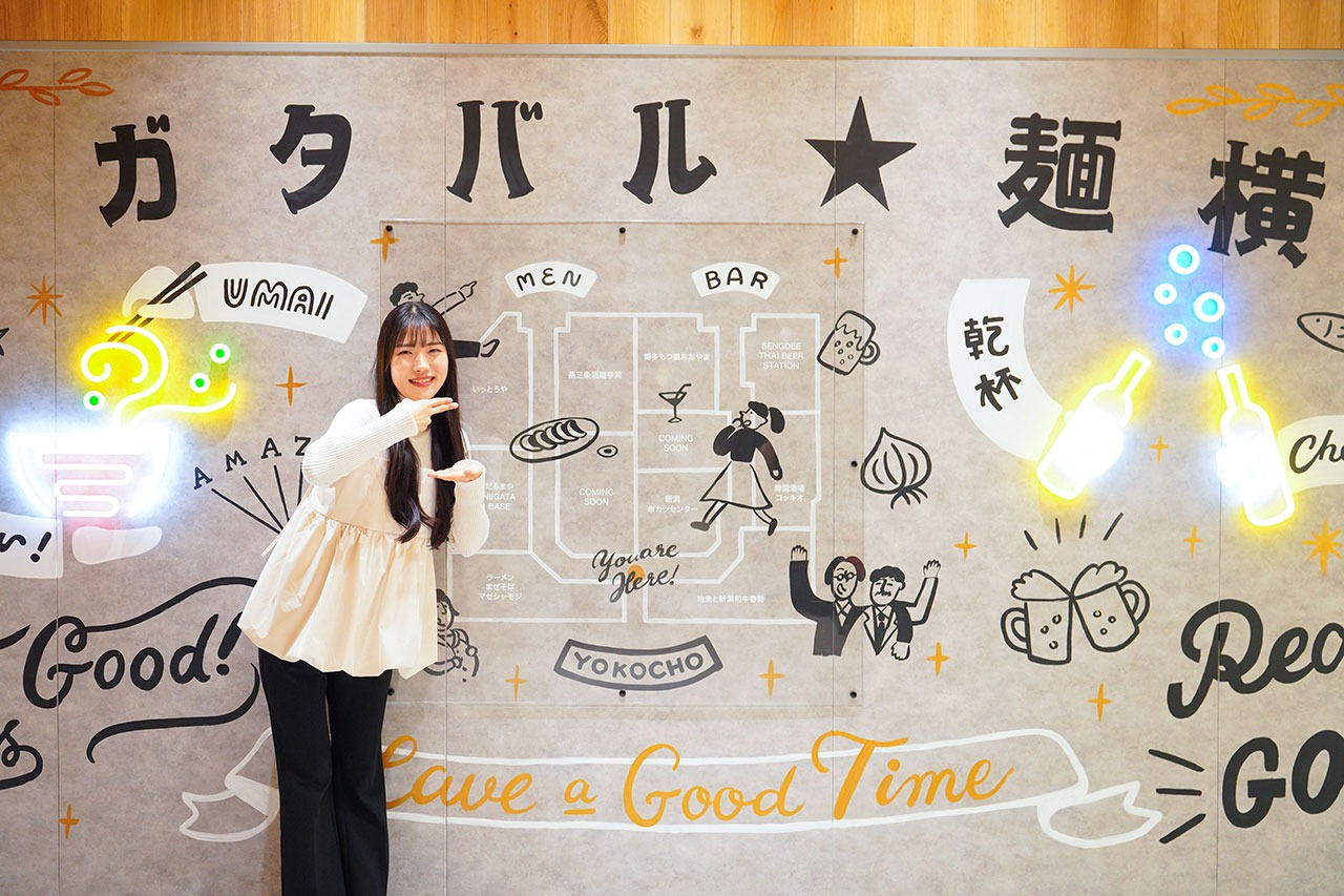 新潟名物へぎそば、ラーメン、寿司や新潟の食材を使った話題店の一品など、人気のグルメを楽しめる新潟駅ビル「CoCoLo新潟」。館内にはラーメン屋や居酒屋が集まる「ニイガタ バル☆麺横丁」、タレカツ丼の老舗やおにぎり屋など新潟らしいお店が並ぶ「ニシデリストリート」、人気店の味に出会える「エキナンキッチン」の3つの飲食街があり、飲食店が充実しています。今回はその中から新潟名物や新潟食材を使用した料理を食べられる5店舗を厳選。第15代にいがた観光親善大使の丸田さんと人気のメニューを紹介します。