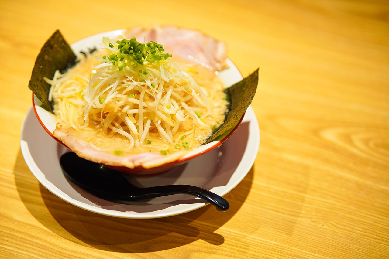 創業から変わらない味の「だるまラーメン」はだるまやの看板メニュー。麺の上にはたっぷりのもやし、大きめのチャーシュー、背脂がトッピング。チャーシューは10時間も煮込んでいるそう。