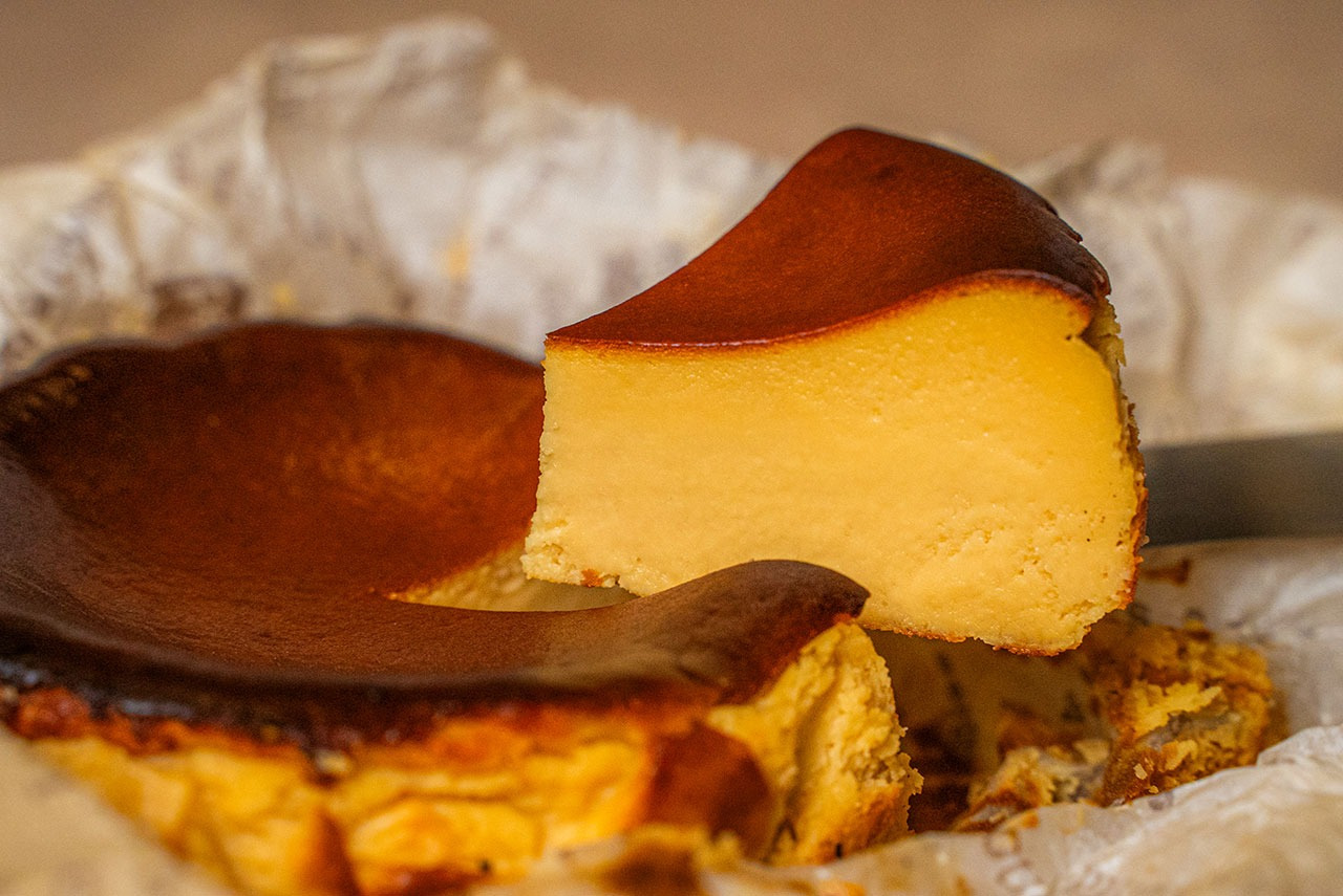「笹川流れの塩バスクチーズケーキ」は、材料に新潟県産の卵を使用した一品。濃厚でなめらかな口溶けが特徴。村上市の笹川流れの塩をトッピングすることでメープルシュガーの香りとコクが引き立ちます。