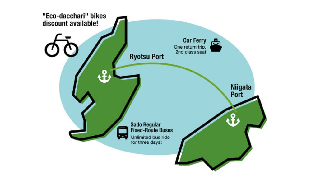 SADO NIIGATA Pass is a great-value ticket set that includes a round-trip car ferry ticket with Sado Kisen, the Niigata City Loop Bus, and a 3-day free pass for buses in Sado City. It is available exclusively to international visitors. You can apply online and pick it up at the Niigata City Tourist Information Center. Special offers at participating shops are also available with the bus tickets.