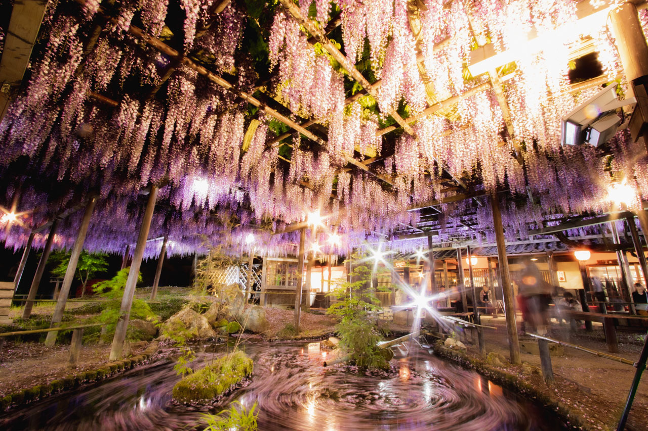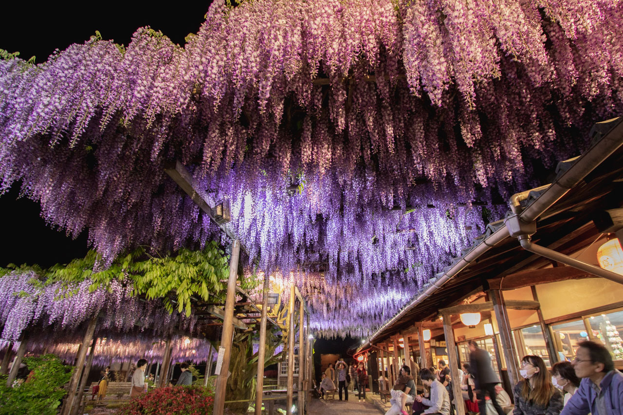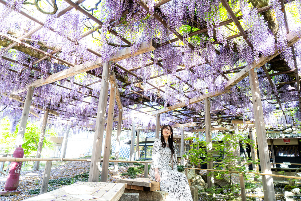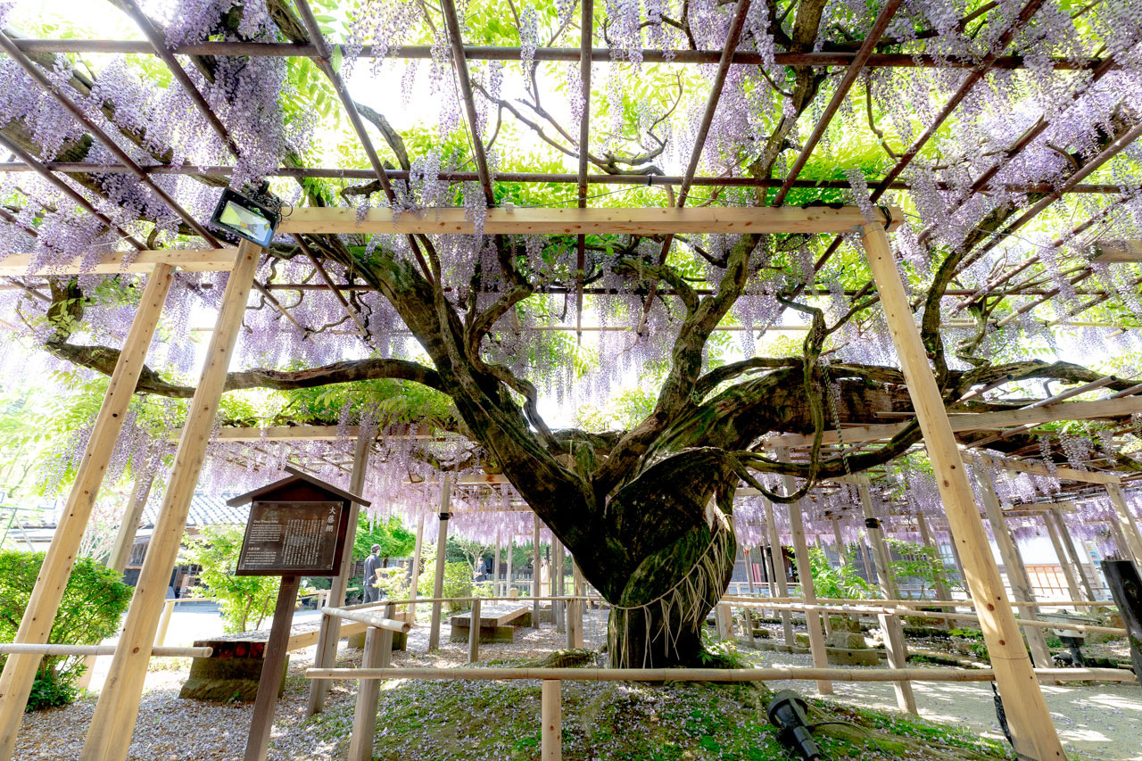 樹齢150年越えの大藤から広がる80畳ほどの藤の花は圧巻です。