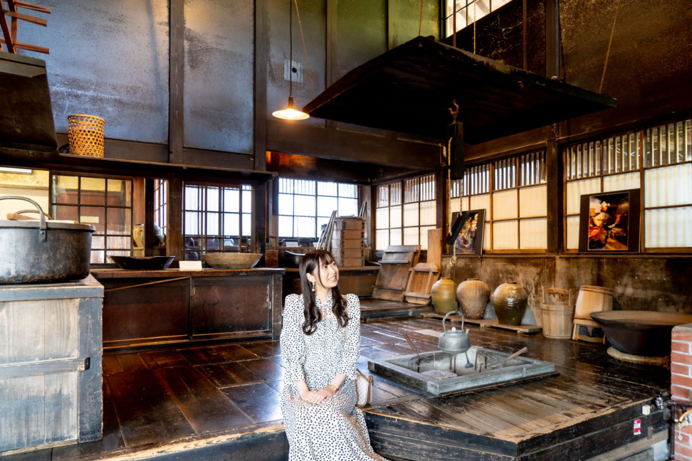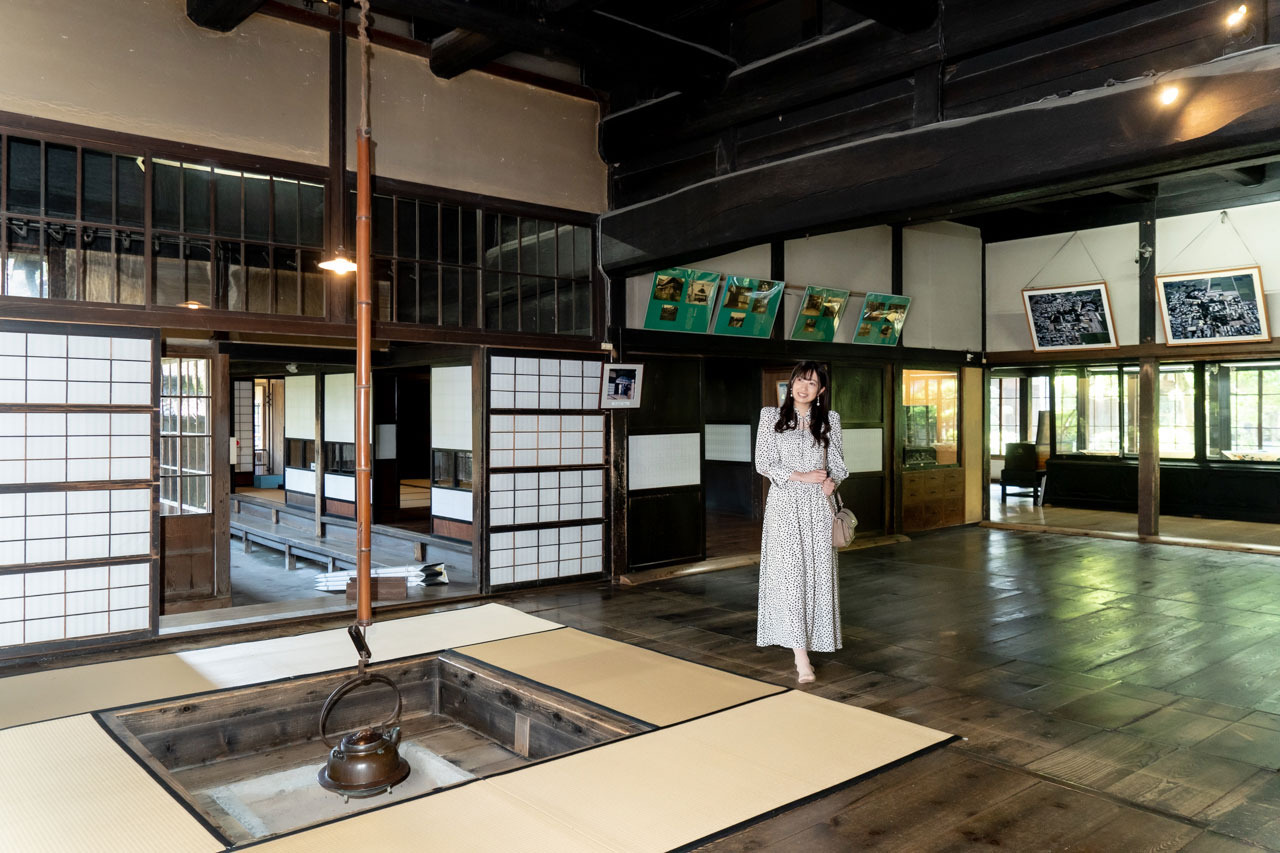 60人もの使用人を抱えていた時代の賑やかさを感じられる主屋棟には、16人が一度に座れる囲炉裏や、通り土間などが当時の姿で残されています。