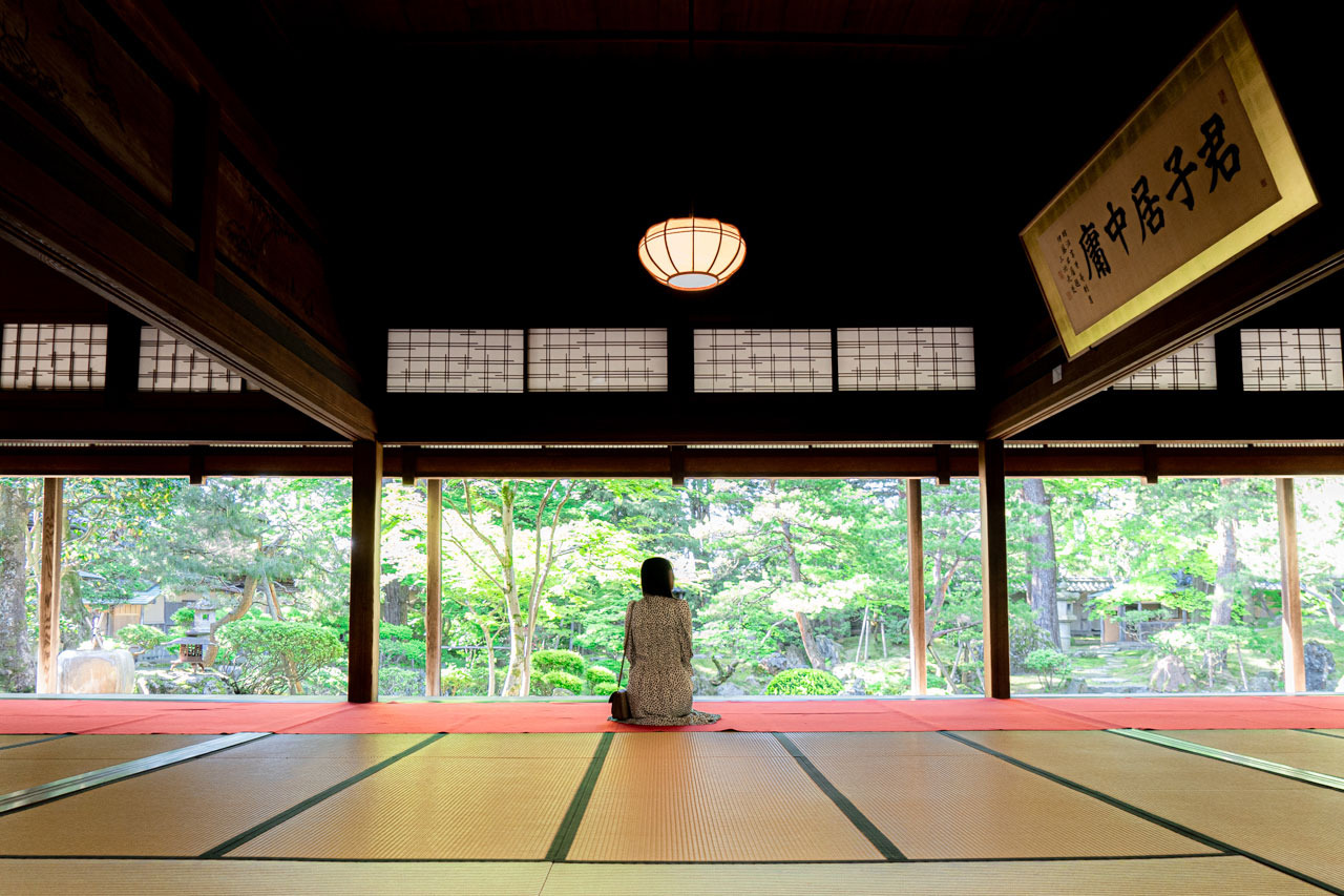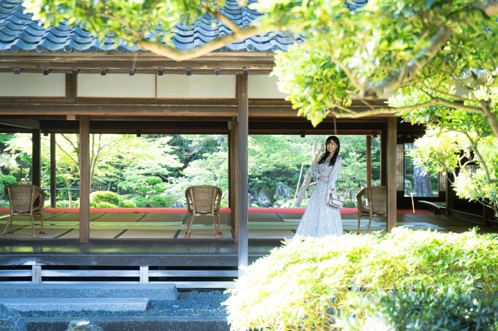 そこから見えるのは、5つの茶室が点在する広大な庭。鎌倉時代や室町時代に主流だった回遊式庭園になっていて、京都にある銀閣寺ゆかりの庭師によって5年がかりで造られました。秋には紅葉も楽しめますよ。