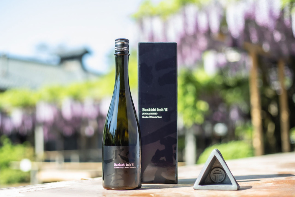 新発田市の王紋酒造が作る日本酒「純米吟醸原種 八代 伊藤文吉(左・2,200円 / 720ml)」。北方文化博物館の藤の花の酵母で作った日本酒で、華やかな香りと軽い味わいが特徴です。三楽亭をイメージした「三角瓦(右・2,200円 / 常時販売)」もオススメ。