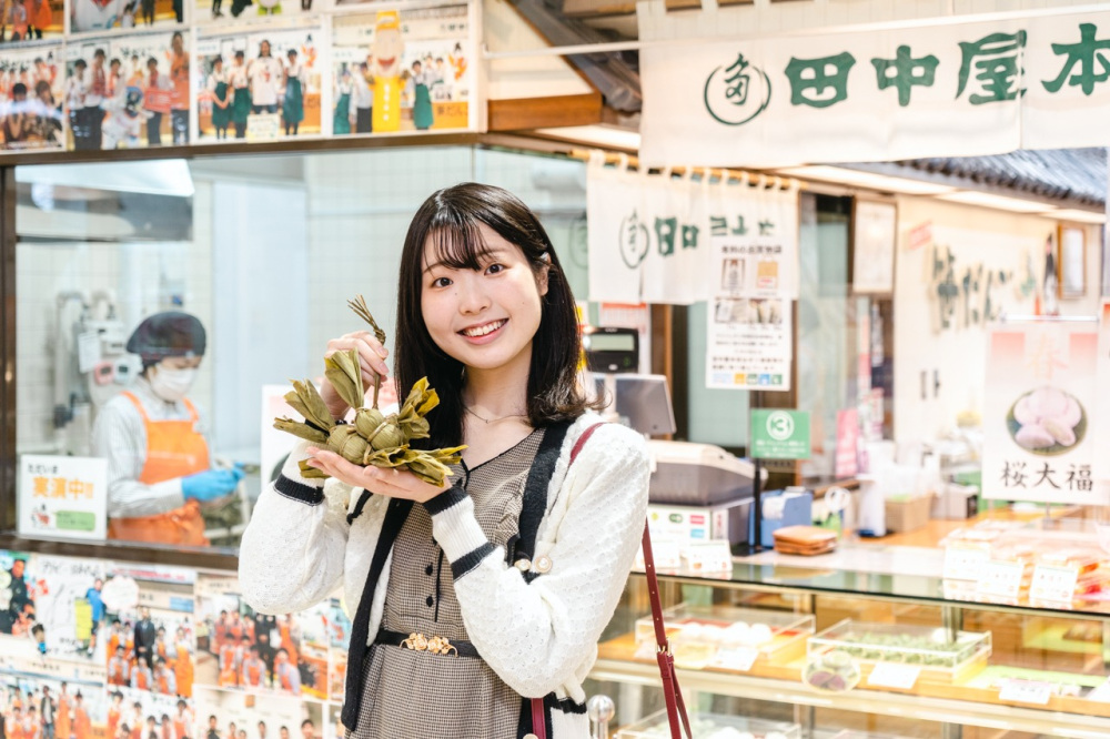 実演販売をしている「田中屋本店」では、店内で手作りされる出来立ての笹団子を購入できます。