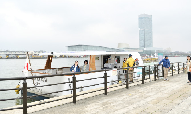 This water shuttle service between Minatopia located at the river mouth of the Shinanogawa River and Niigata Furusato Village at the upper reach. The shuttle passes under the Bandai Bridge, a national important cultural property. Enjoy the bank landscape that changes with the four seasons from the shuttle.