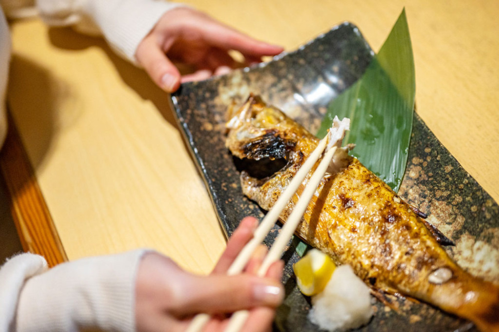 続いて、新潟に来たら食べておきたいのどぐろの塩焼き。白身魚のトロと言われるほどの上品な脂がたまりません。お好みでレモンを絞って、大根おろしと一緒にいただきます。美味しさの秘密は、焼く前の一手間。塩水につけることで余分な水分が抜けてしっとり仕上がるんだそう。