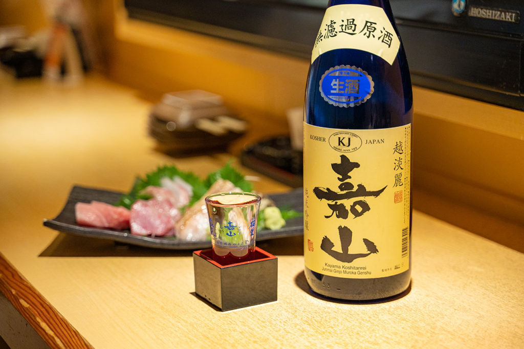 料理に合わせたのは、新潟でも話題のDHC酒造が造る純米吟醸「嘉山」。県内でも飲めるお店が少ない日本酒です。無濾過原酒のため、すっきりとした喉越しが女性に人気の一杯。日本酒の仕込み水を使用した和らぎ水をサービスしてもらえるのも、お酒好きには嬉しいポイントです。
