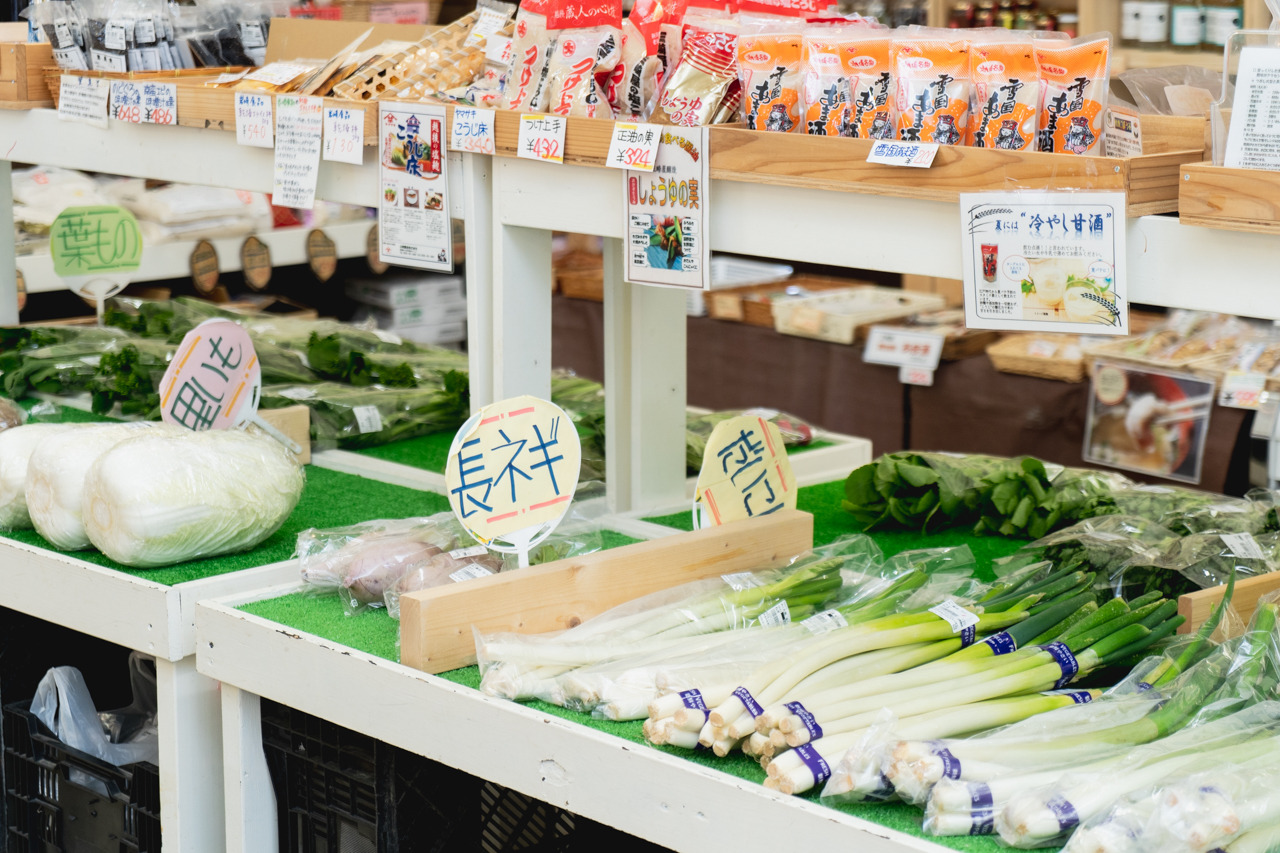 直売コーナーには、地元で採れた新鮮な野菜や、県内の名産品などがたくさん!