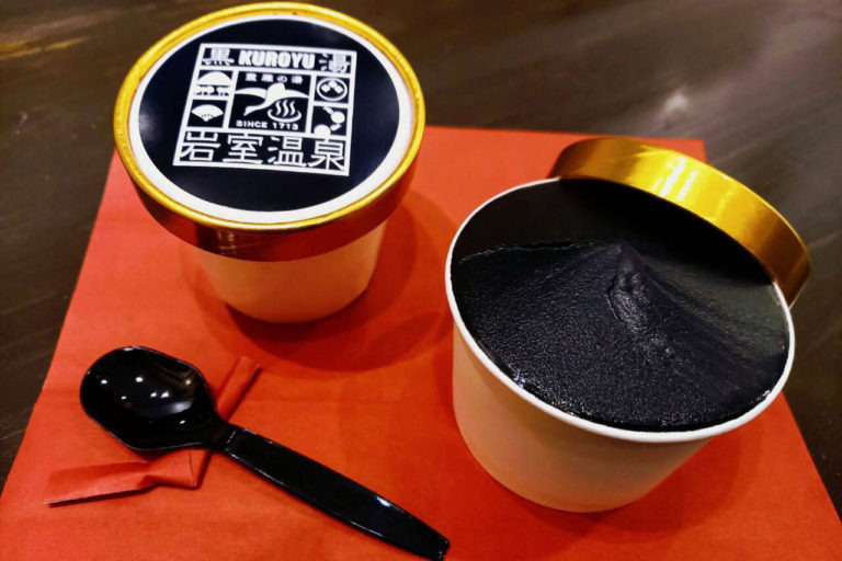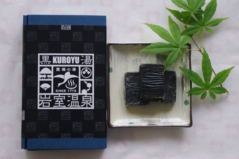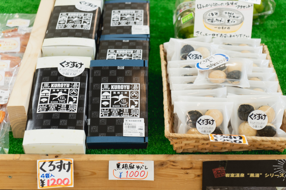 泉質をイメージした「黒湯」シリーズは、岩室温泉旅館組合によって2021年に商品化されました。お菓子やポロシャツ、トートバッグなど種類は全部で8つ。きめ細かく上質な竹炭を使用したジェラートや、ゴマなどを使用した黒胡麻ゆべし、桶に見立てたモナカの皮に黒湯をイメージした真っ黒なサブレを入れて焼き上げた「くろすけ」などユニークな商品が揃っています。
