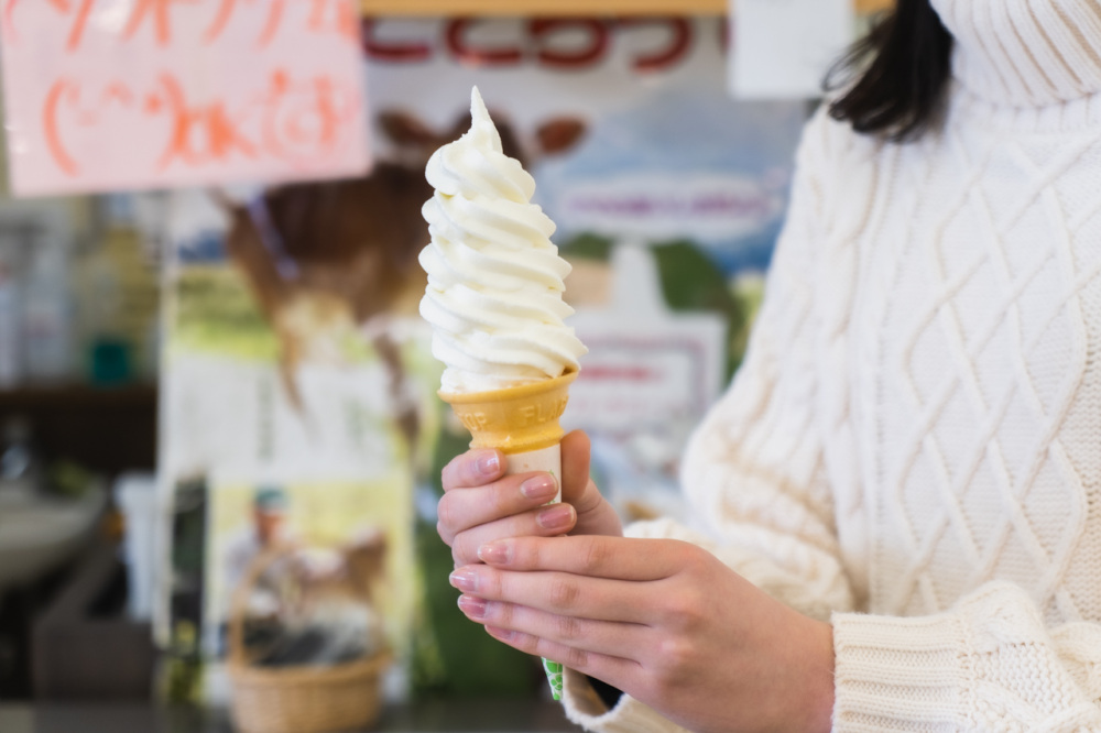 テイクアウトメニューには、西蒲区の牧場で採れたジャージー牛乳を使用したソフトクリーム(バニラ/350円)も人気。時期によって旬の果物を使ったフレーバーも登場します。