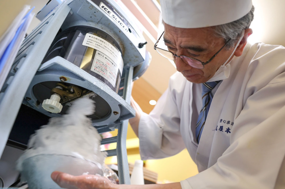 きめ細やかな食感の氷には、佐渡の海洋深層水を使用。季節によって氷は硬さが変わるので、職人の手で調整しながら削っているそう。熟練の技がおいしさの秘訣です。