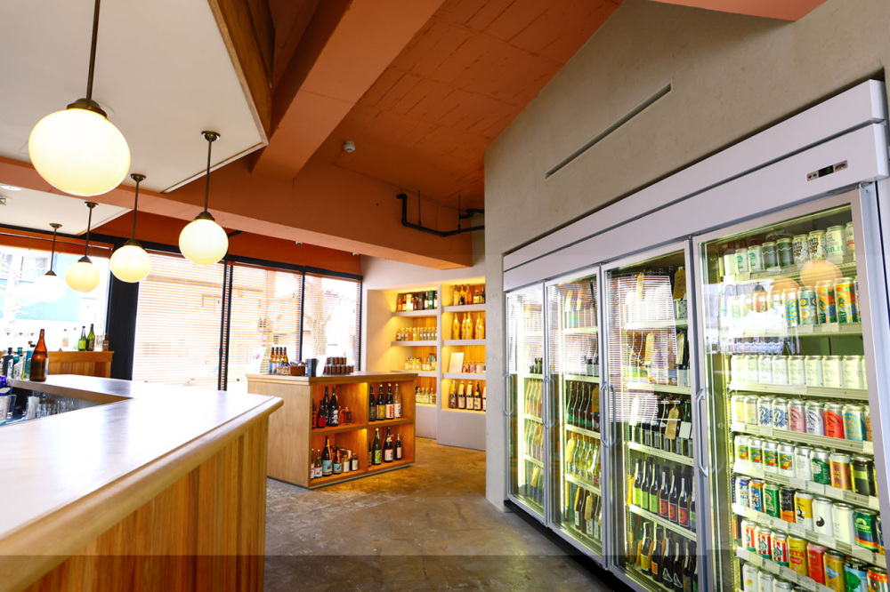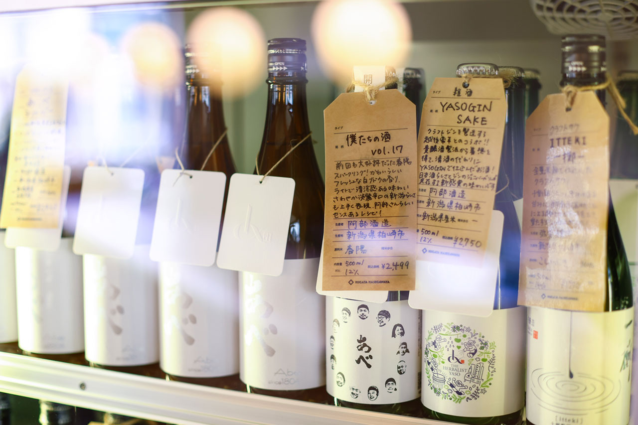 店内には、店長の長谷川さんが厳選する日本酒やワイン、焼酎、ジンなど、たくさんのお酒が並びます。専門性の高いスタッフさんが詳しく説明してくれるので、自分好みの一杯を探すことができます。