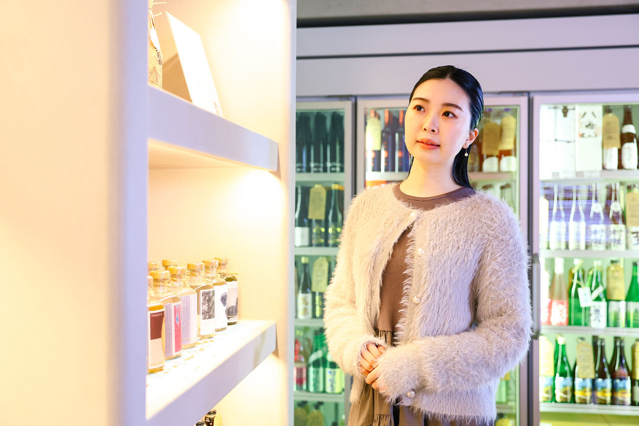 角打ちで気に入ったお酒は、隣接する酒売場で購入することができます。ぽんしゅ館では、県内の酒蔵を2ヶ月ごとに特集しており、限定のお酒が並ぶことも。お土産を選ぶ際には、ぜひ特設コーナーをチェックしてみてください。