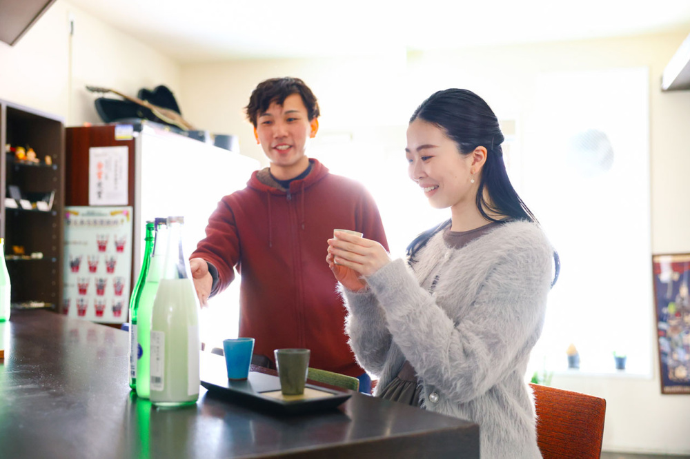 酒蔵の魅力を熟知している酒屋ならではの品揃えなので、訪れるたびに新たな銘柄との出会いが楽しめるはず。さらに、酒器にもこだわっていて、沼垂テラスにある陶磁器工房「青人窯(あおとがま)」の作品を使用しています。各蔵元の歴史や取り組みに精通している大坂さんの話を聞きながら飲めば、日本酒の味わいがさらに深く感じられるはずです。