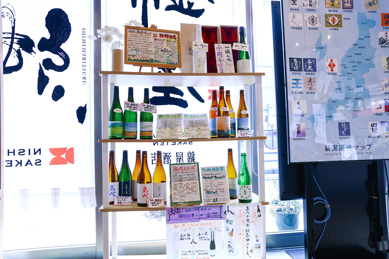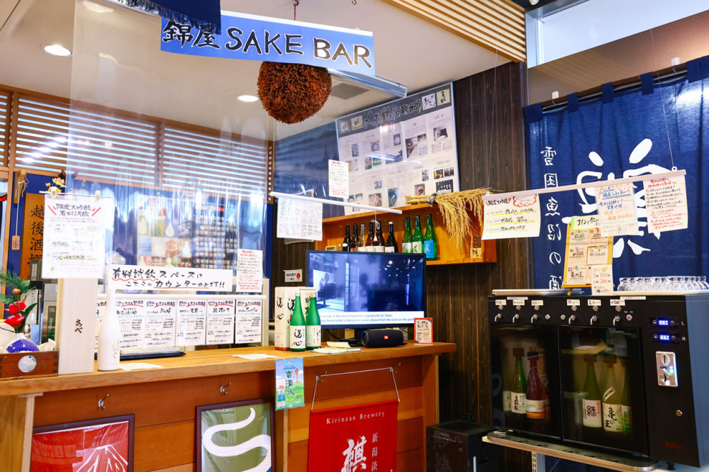 角打ちがあるのは、日本酒をはじめ、米菓やお菓子、爆弾おにぎりなど新潟の魅力に出会えるぽんしゅ館コンプレックス。改札に近いので、時間を気にせずに立ち寄れるのは嬉しいですね。
