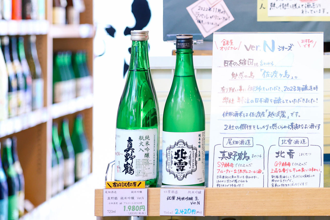 佐渡の蔵元尾畑酒造の「真野鶴」、北雪酒造の「北雪」とコラボした商品にも注目。酒米と精米歩合は同じですが、異なる酵母を使用しています。酒屋と蔵元のこだわりを感じる一本ですね。