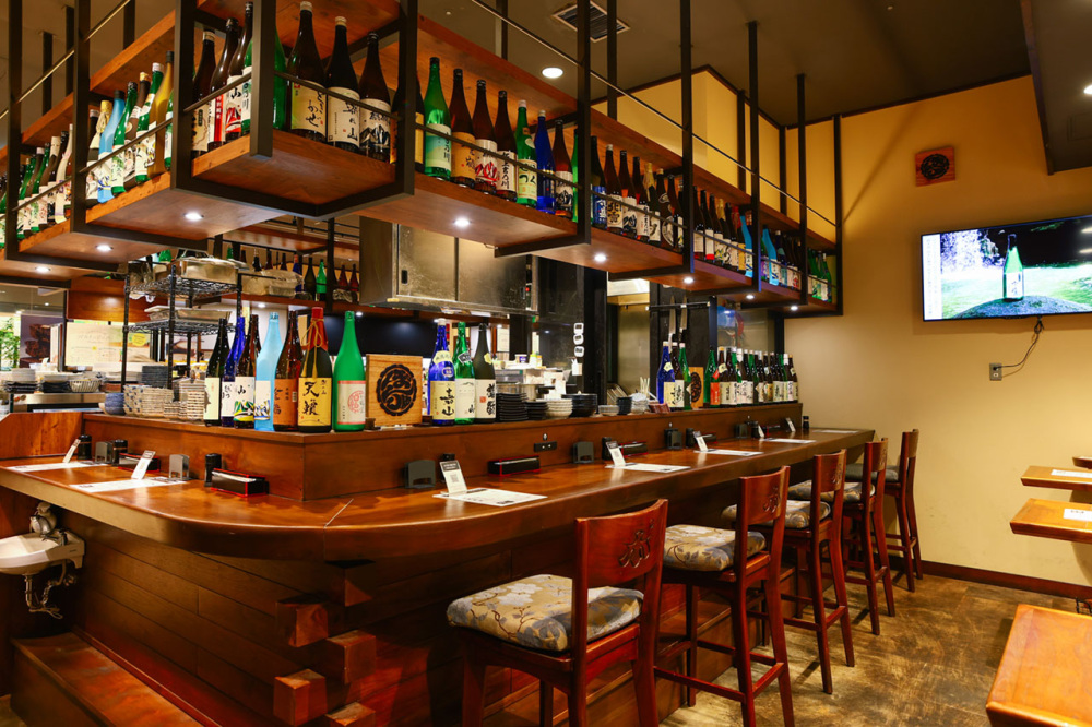 新潟市中央区古町にある「大坂酒店」は、1945年創業の老舗の酒屋。店内には、バーカウンターが設けられ、日本酒に囲まれながら試飲を楽しめる贅沢な空間になっています。