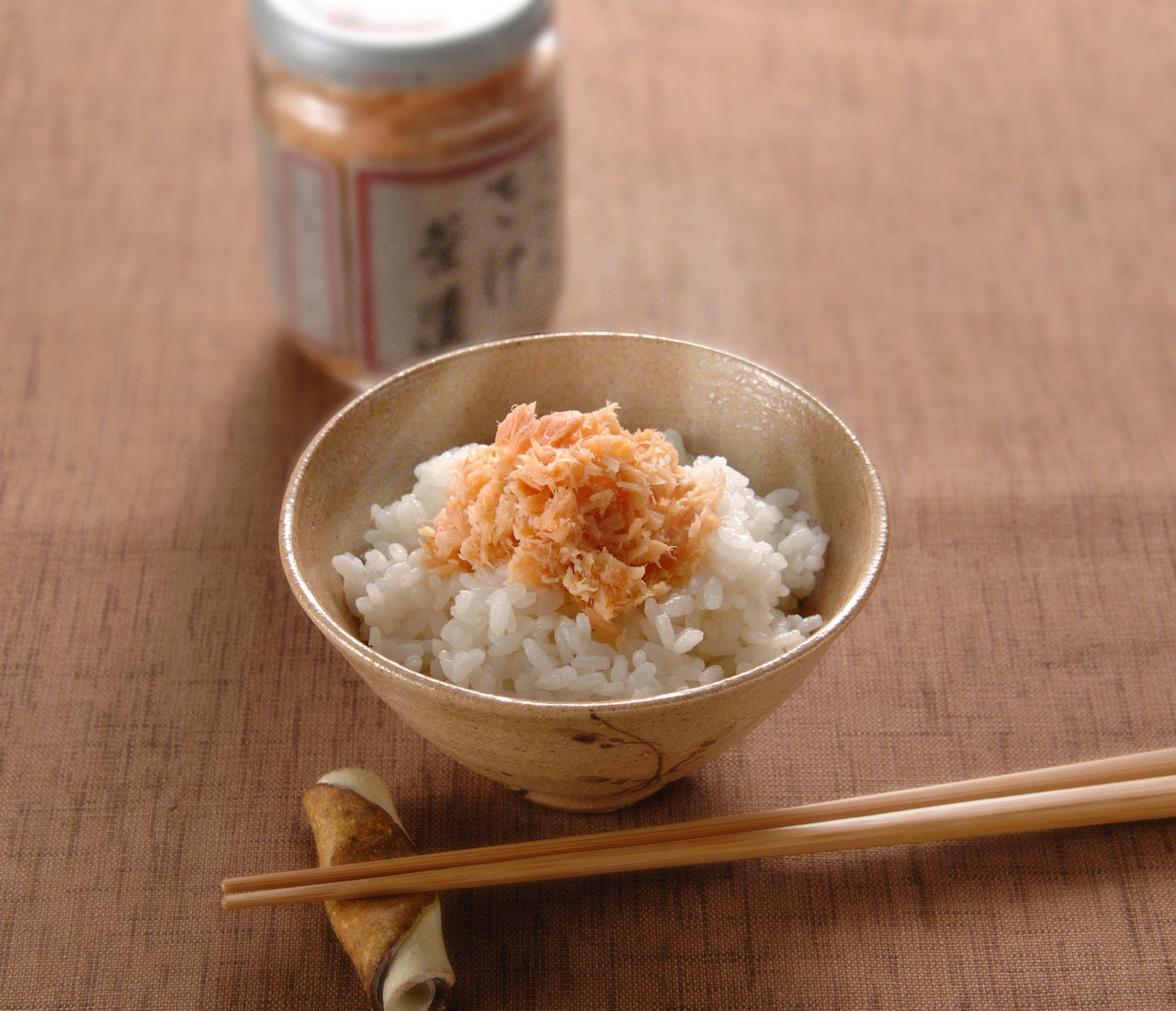 この「さけ茶漬」が誕生したのは、昭和34年(1959年)のこと。先代(4代目)社長のお母さんが、忙しく働く息子のため、食べやすいように焼いた鮭の中骨から身をほぐしておかずにしたことがきっかけだったそうです。